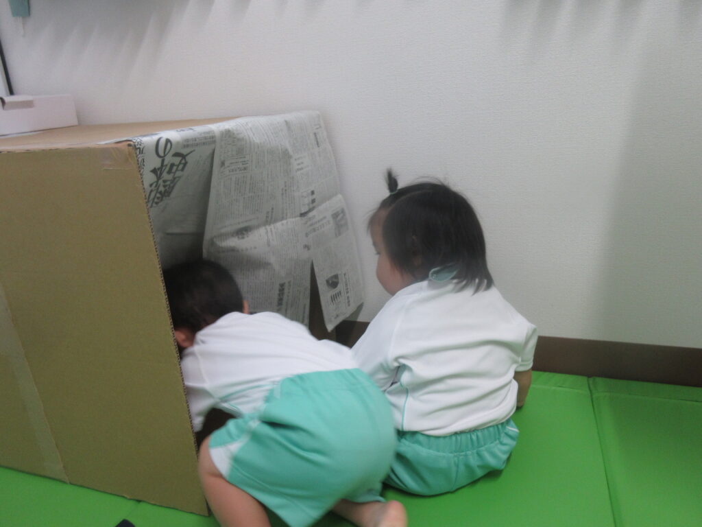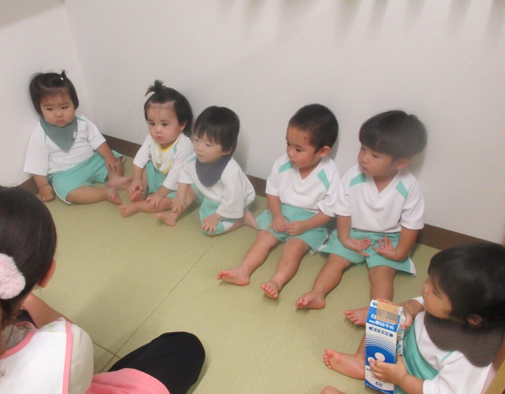 朝、こあら組さんとひよこ組さん、一緒に遊んでいる時に先生が絵本を読んでくれたんだ。