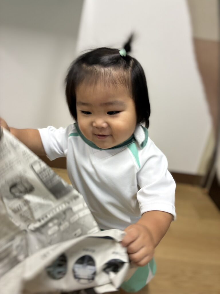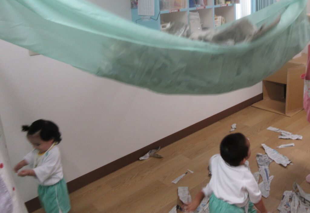 「みず、じゃあじゃあ」「かみ。びりびり」てっ おはなしが始まったよ。