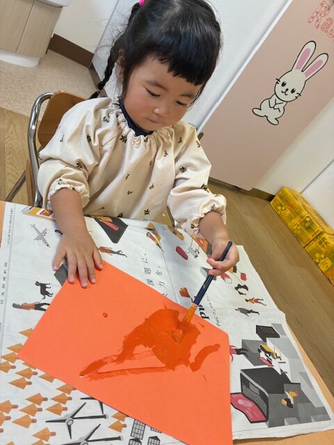 10月の製作は「ハロウィン🎃」絵の具でぬりぬり…何に変身するかな😊