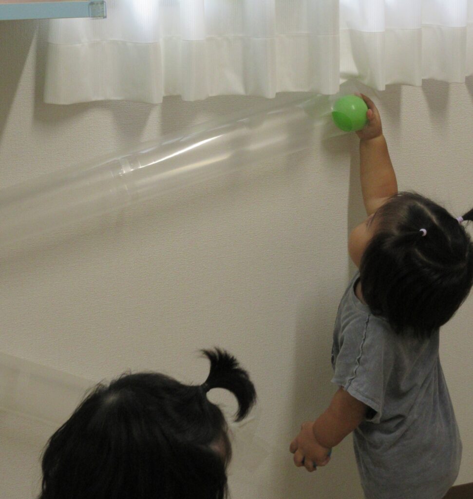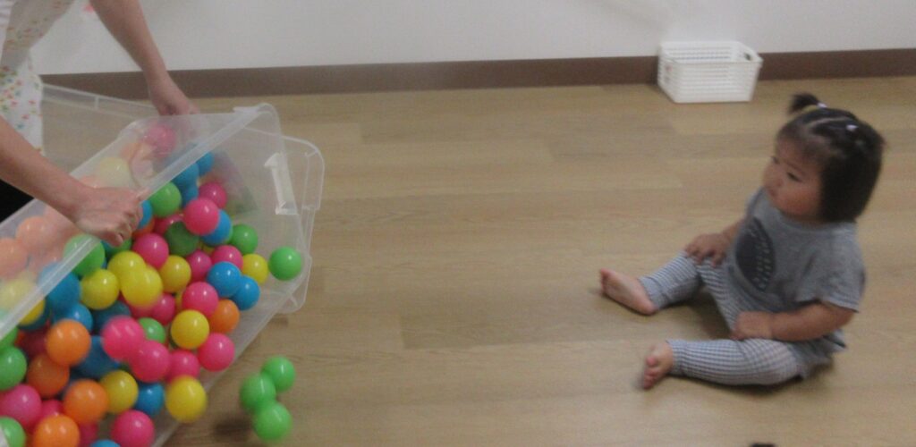 よいしょ! ちょっと背伸びしてポン! ボールころころ。