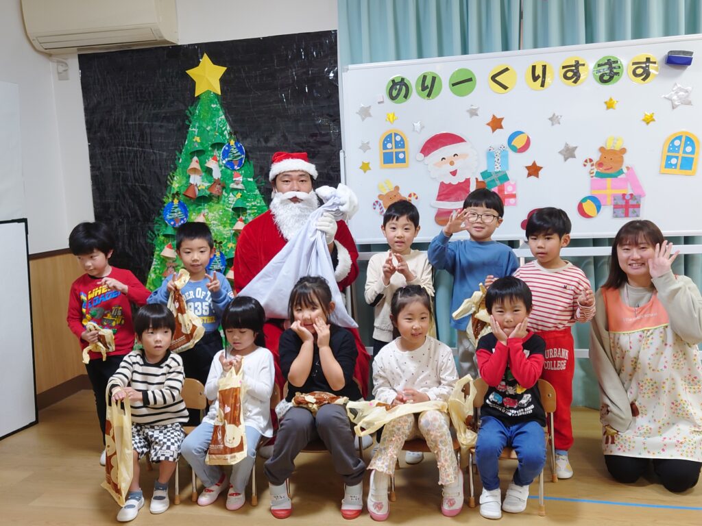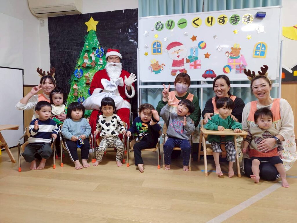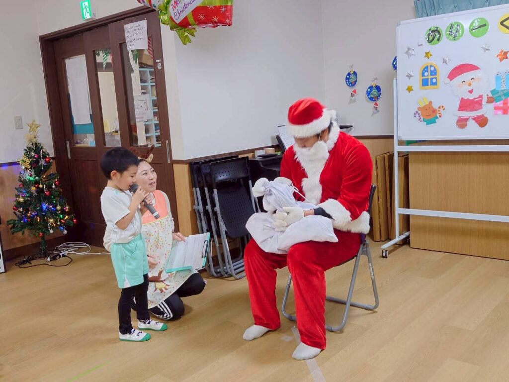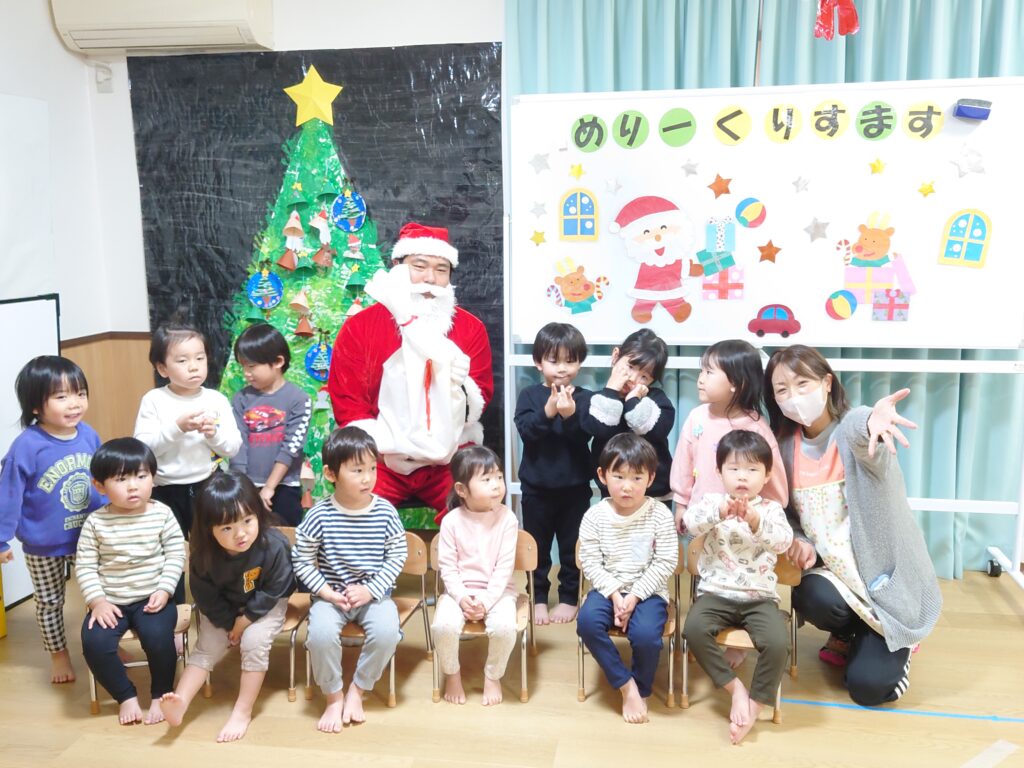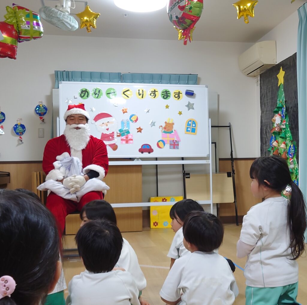 2025年の12/25、わくわく春山保育園にもサンタクロース🎅がやってきました。