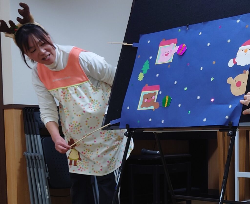 さあ!わくわく春山保育園のクリスマス会のはじまりです。クリスマスってどんな日?のおはなしを聞いたり、トナカイ探しのクイズをしたりしたよ。