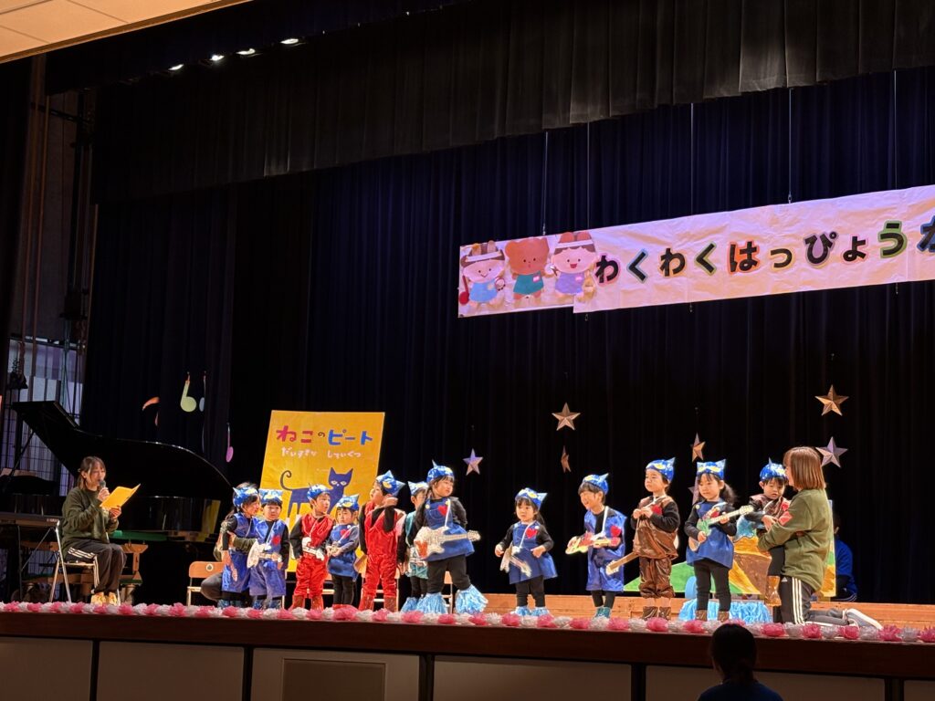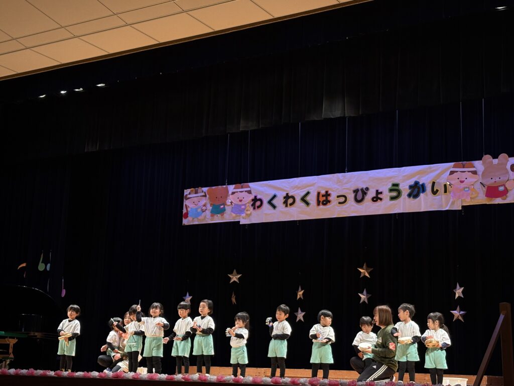 先日、松元公民館にて、春山保育園の「わくわくはっぴょうかい」が行われました。朝はあいにくの雨でしたが☔昼前にはすっかりお天気になりましたね🌞