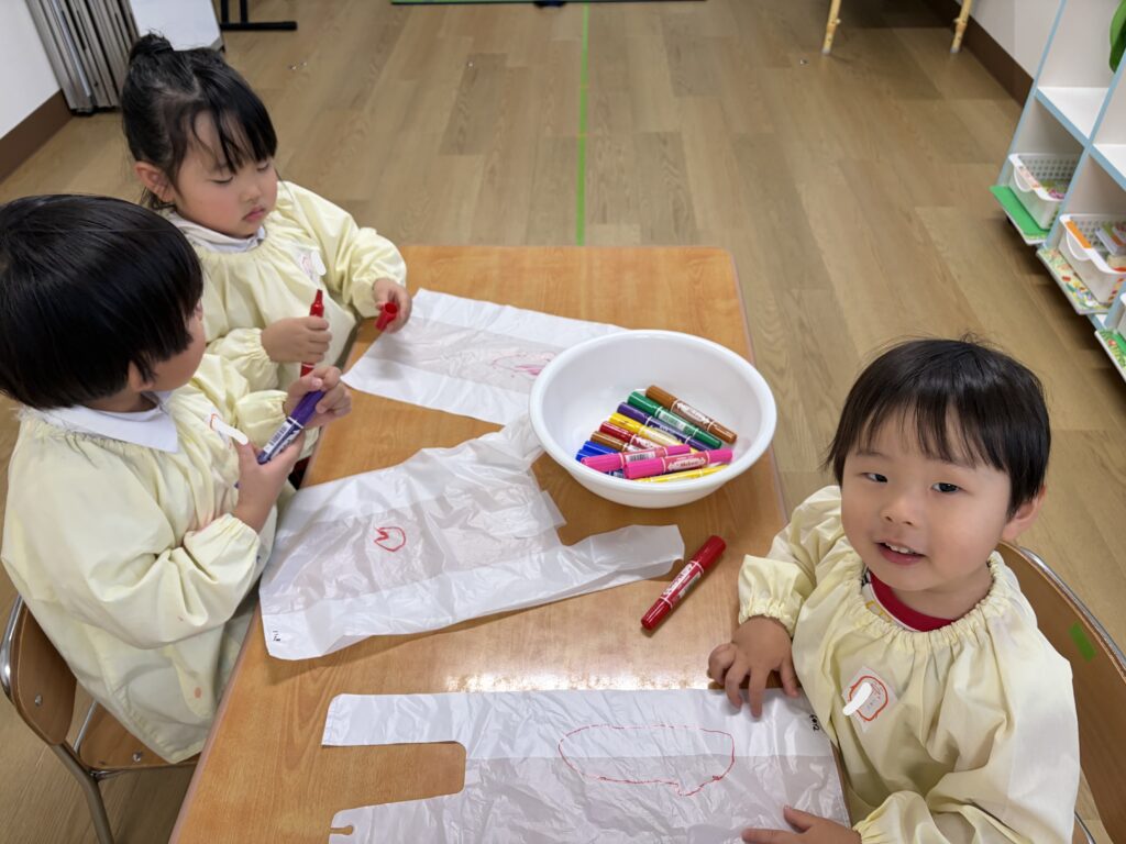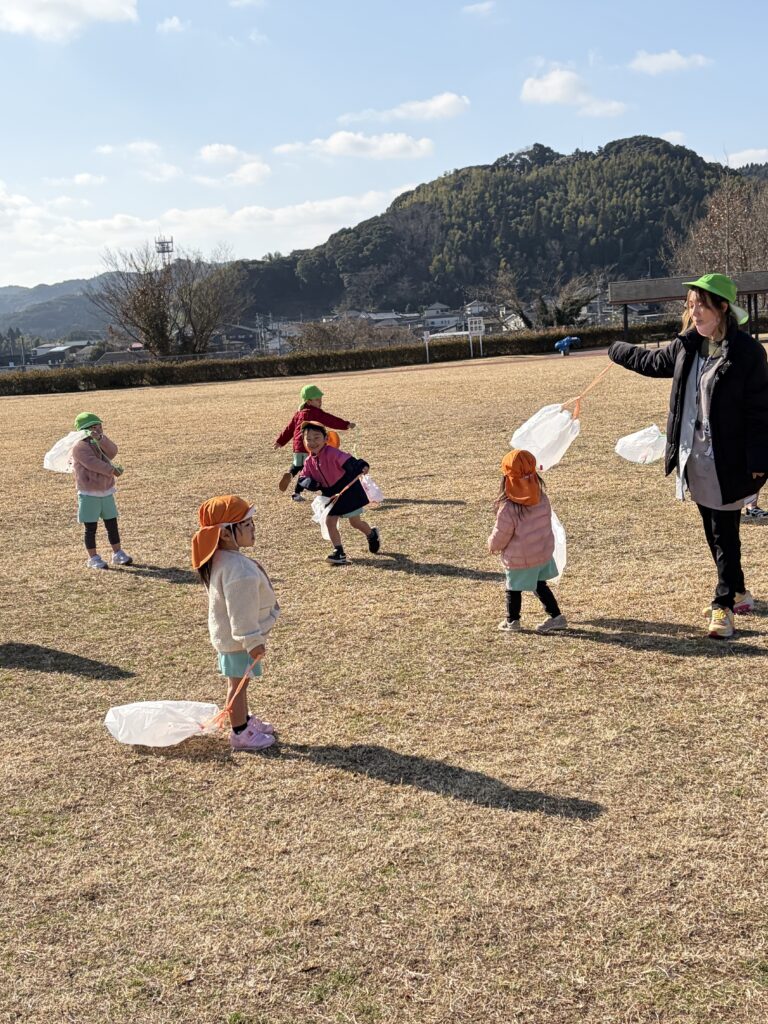 風もあり、ビニール袋の中に風が入ると大喜びの子ども達♡