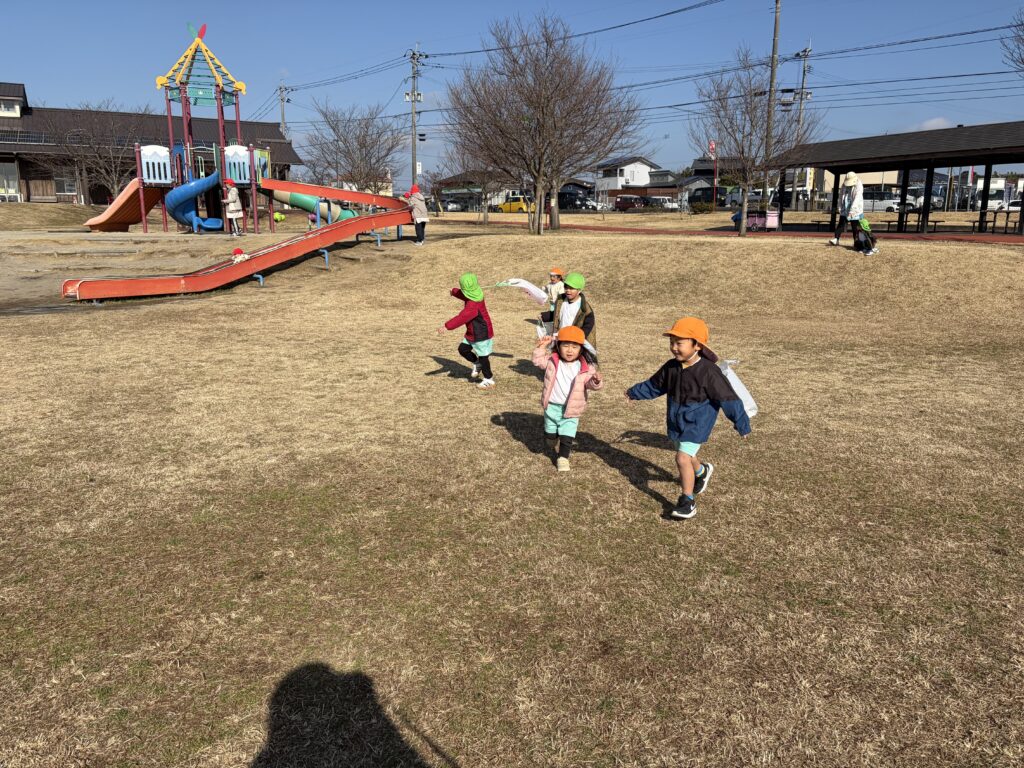 今日は子ども達が作った凧を持ってお茶の里公園へ散歩に行きました♡
