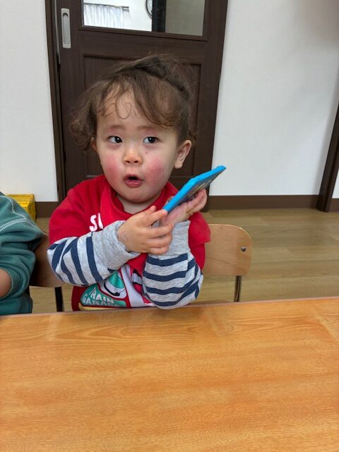 お話も上手になり、ブロックを耳にあてて「もしもしごっこ」をしていたのでスマホ作りにも挑戦しましたよ✌️✌️