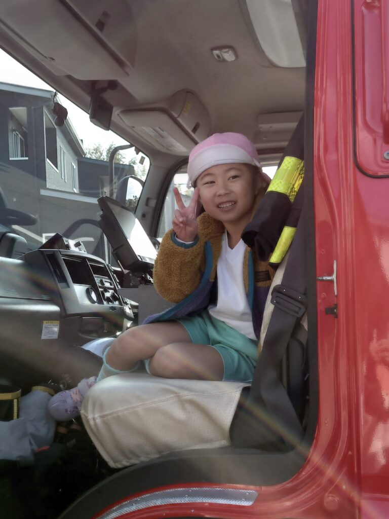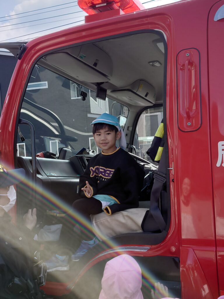 おかしもちの約束は必ず守ります。「みんな、かっこよかったね!」と消防士さんからも褒められてにっこり。
